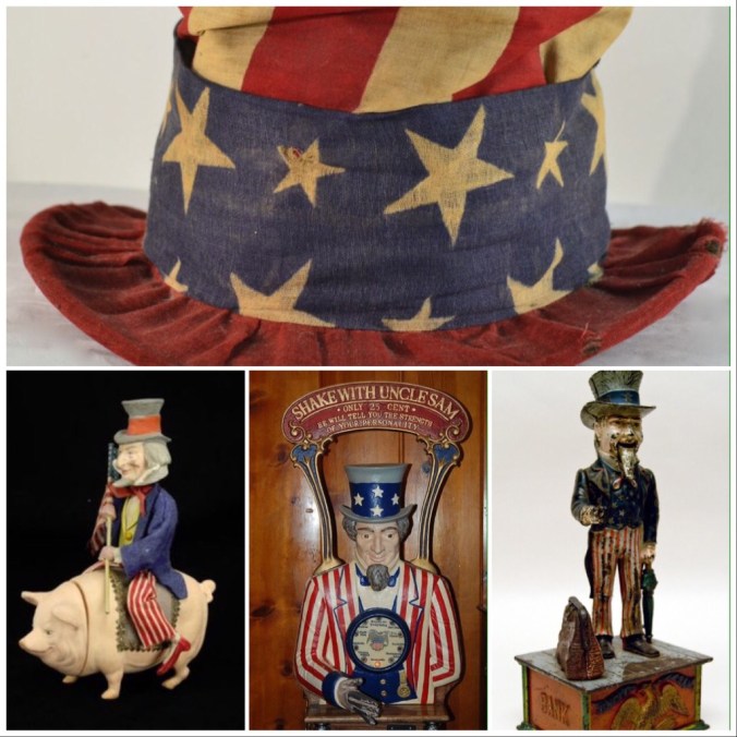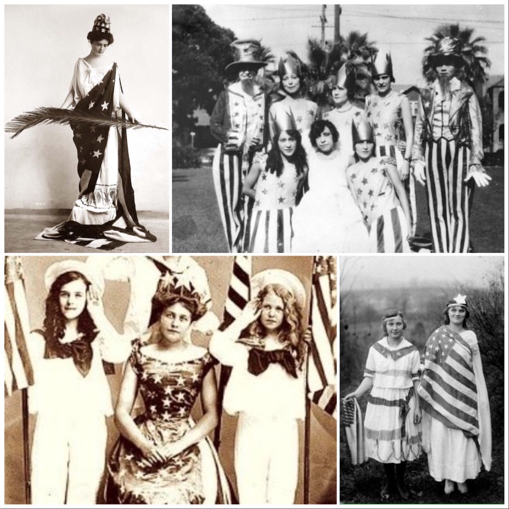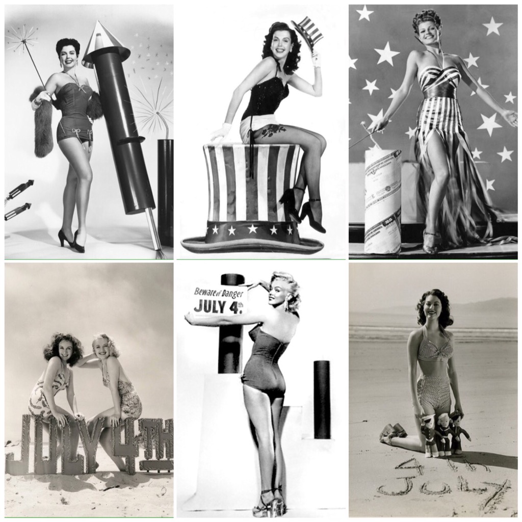 Postcards, black and white photos of movie stars, (is that Marilyn Monroe?), cast iron banks, etc. all very collectible and fun to revisit. And check out those 4th of July costumes! Fun and festive!