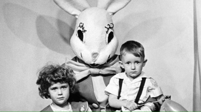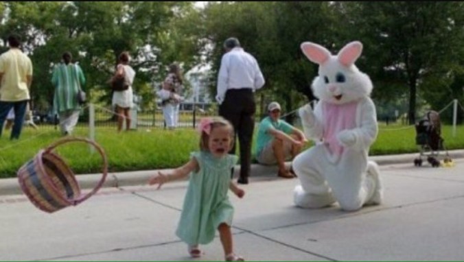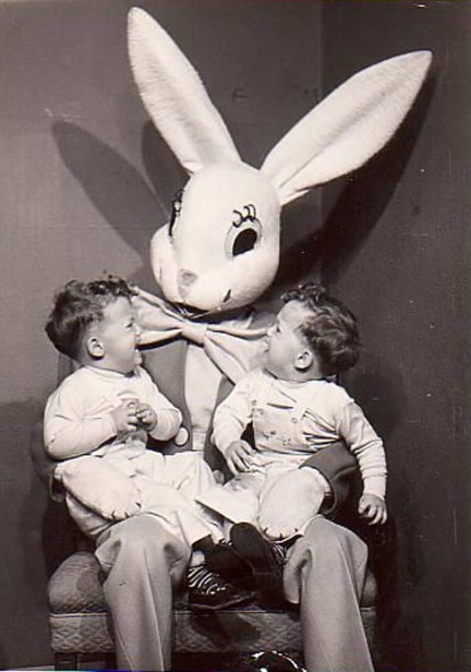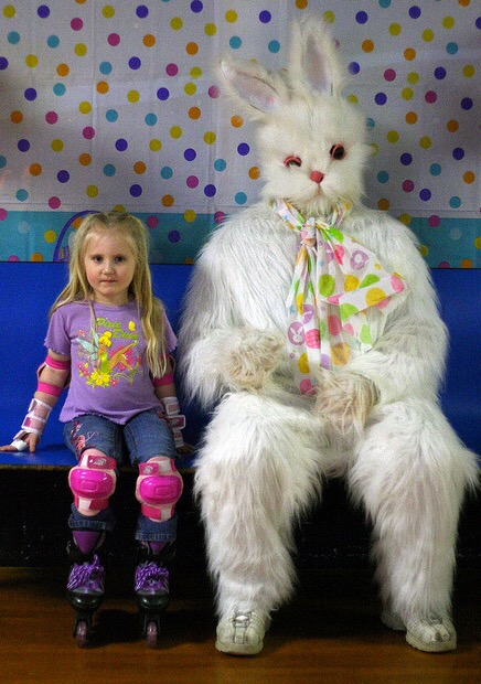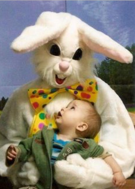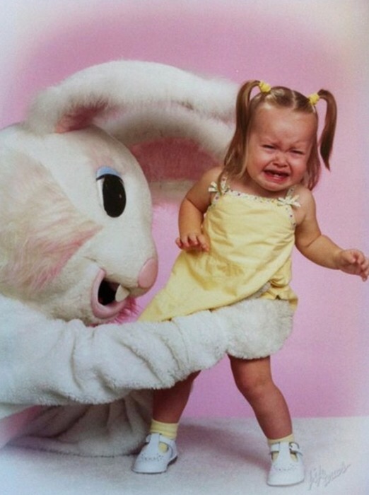 Easter bunny photos can be so sweet. Pretty girls, cute kids, chocolate treats, even Debbie Reynolds! But then we get to the dark side. For some reason, sitting on the lap of a big scary rabbit has never quite caught on with the children.