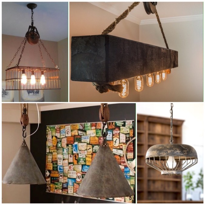 Some very interesting industrial-looking lighting can also be gleaned from the DIY (do it yourself) world. Clever people are making lamps out of chicken feeders, old strainers, bird cages, etc. It can be a great look and it’s always fun to reduce, reuse, recycle.