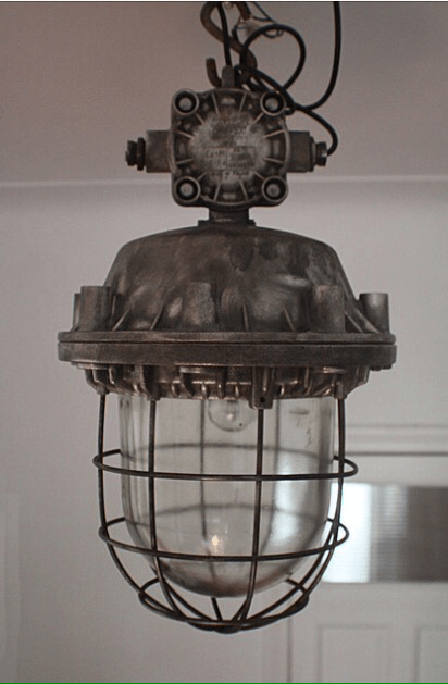 Some of the most interesting industrial lighting pieces are “explosion proof” fixtures. Rugged 20th century models, developed for use in hazardous industries like coal mining or petrochemicals, they typically feature housings of caged wire.