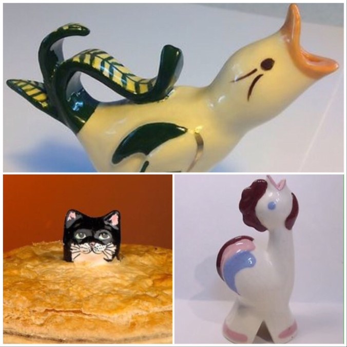 Taking inspiration from the popular “Sing a Song of Sixpence” nursery rhyme, which mentions “4 and 20 blackbirds, baked in a pie,” ceramic designers eventually moved away from utilitarian and came up with charming new forms.